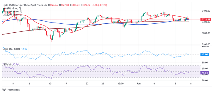 Bednarik补充道,近期走势表明,金价可能会重新测试3300美元/盎司关口。金价短暂突破看跌的20周期SMA线,但未能保持在该水平之上。与此同时,200周期SMA持平于3300美元/盎司附近,提供盘中支撑,并强化这一整数关口的支持力度。此外,技术指标在负值水平内温和下跌,使金价走势风险偏向下行。