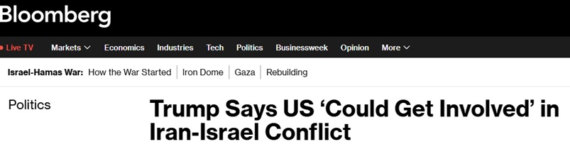 当地时间周日,美国总统特朗普(Donald Trump)表示,美国有可能介入以色列与伊朗的冲突。