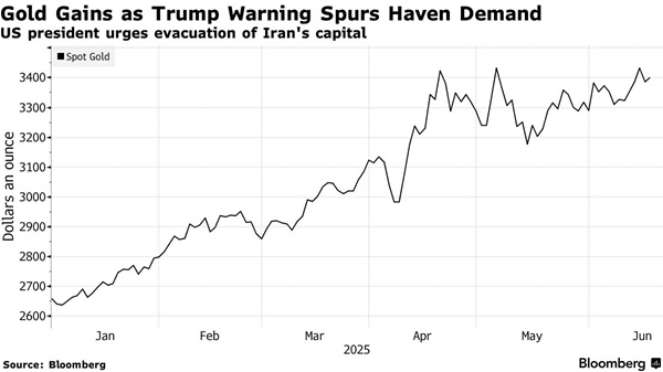 在投资者追踪以色列和伊朗之间的敌对行动之际,美国总统特朗普呼吁立即撤离伊朗,并要求官员在战情室做好准备,这提振对避险资产的需求,金价在周二亚洲早盘交易中走高。