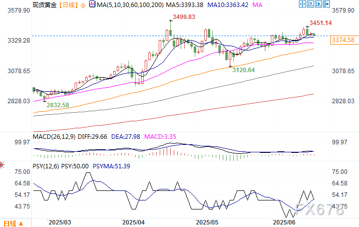 北京时间6月18日10:24 现货黄金 报 3374.58 美元/盎司