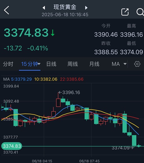 北京时间10:16,现货黄金报3374.83美元/盎司。