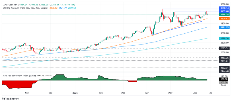 24K99讯 周三(6月18日)亚市盘中,现货黄金短线突然加速下滑,金价刚刚跌至3375美元/盎司附近,较早盘触及的高点3396.16美元/盎司回落逾20美元。FXStreet分析师Christian Borjon Valencia撰文,对金价技术走势进行分析。