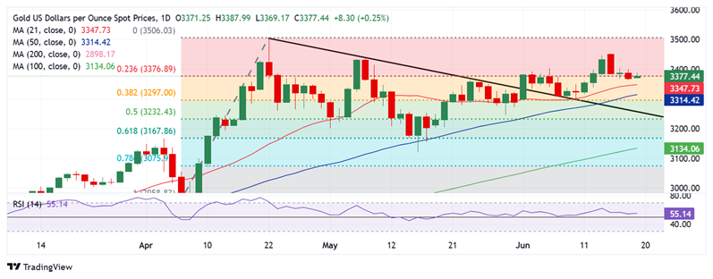 周四(6月19日)亚市盘中,现货黄金维持日内温和涨幅,目前金价位于3375美元/盎司附近。FXStreet高级分析师Dhwani Mehta撰文,对金价技术走势进行分析。