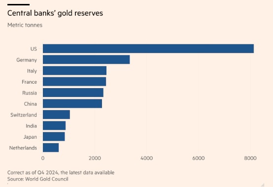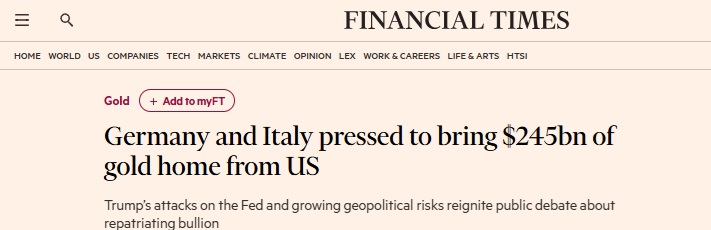 在意大利总理梅洛尼(Giorgia Meloni)4月份前往华盛顿与特朗普会面之前,经济评论员Enrico Grazzini在意大利报纸《事实日报》上撰文称:“在不可靠的特朗普政府领导下,将意大利43%的黄金储备留在美国,对国家利益来说非常危险。”