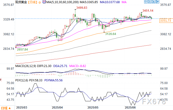 北京时间6月24日10:19 现货黄金 报 3348.02 美元/盎司