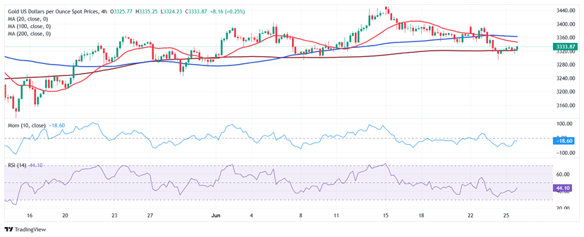 24K99讯 周四(6月26日)亚市盘中,现货黄金维持日内反弹走势,金价目前位于3342美元/盎司附近。FXStreet首席分析师Valeria Bednarik撰文,对黄金技术前景进行分析。