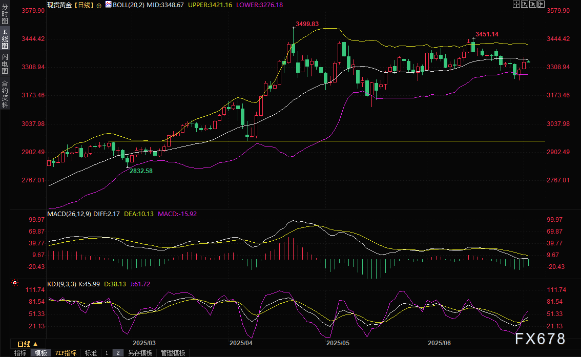 ,黄金市场在2025年7月初迎来了新一轮的上涨热潮,现货黄金价格周二飙升逾1%,触及6月24日以来的最高水平3357.82美元/盎司,收盘报3338.77美元/盎司,为连续两个交易日上涨。这一涨势不仅受到美国参议院通过特朗普“大而美”减税与支出议案的推动,还与即将到来的7月9日贸易关税暂停期限、全球储备货币格局的讨论以及美联储货币政策的最新动向密切相关。周三(7月2日)亚市早盘,现货黄金窄幅震荡,目前交投于3340美元/盎司附近。