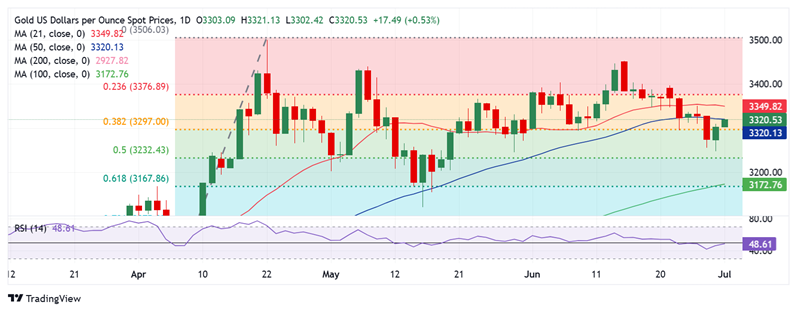 24K99讯 周二(7月1日)亚市尾盘,现货黄金维持日内涨势,目前金价位于3326美元/盎司附近,日内上涨逾20美元。FXStreet高级分析师Dhwani Mehta撰文,对金价技术走势进行分析。
