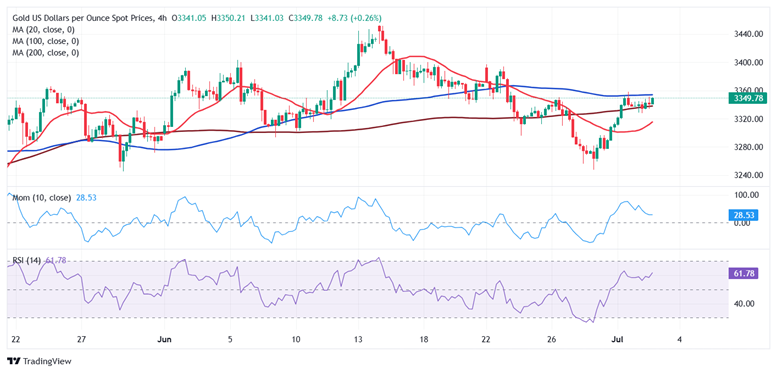 Bednarik写道,从技术角度来看,金价有望延续涨势,尽管还需要进一步的确认。在日线图上,金价一直在努力突破平坦的20日简单移动平均线(SMA),该均线与6月份下滑走势的50%斐波那契回撤位(在3350美元/盎司附近)汇合。100日均线和200日均线在远低于当前金价的水平维持坚定看涨斜率,而技术指标在中性水平内缺乏方向性强度,未能提供明确的方向性线索。