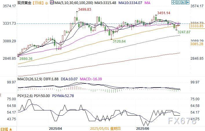 北京时间7月2日14:44 现货黄金 报 3333.85 美元/盎司