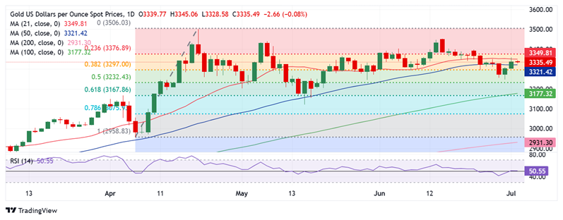 24K99讯 周三(7月2日)亚市尾盘,现货黄金基本持稳,金价目前位于3339美元/盎司附近。FXStreet高级分析师Dhwani Mehta撰文,对金价技术走势进行分析。