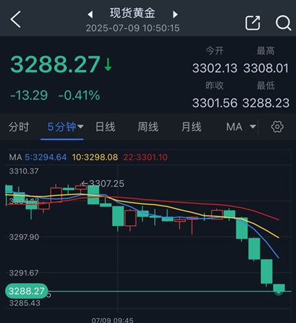 北京时间10:50,现货黄金报3288.27美元/盎司。