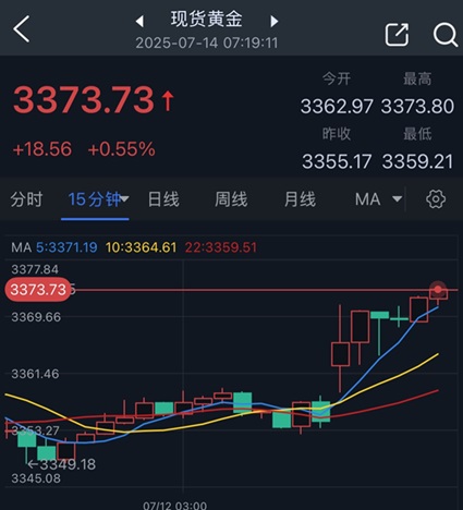 FX168财经报社(亚太)讯 周一(7月14日)亚洲市场开盘后,现货黄金大幅高开,并突破3360美元/盎司关口,美股道指期货下挫近200点。消息面上,美国总统特朗普周末宣布对欧盟、墨西哥征收30%关税。
