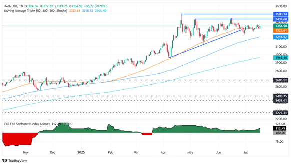 Valencia指出,要想继续看涨,金价必须攻克3400美元/盎司,若如此,金价将瞄准6月16日的高点3452美元/盎司,然后是纪录高点3500美元/盎司。