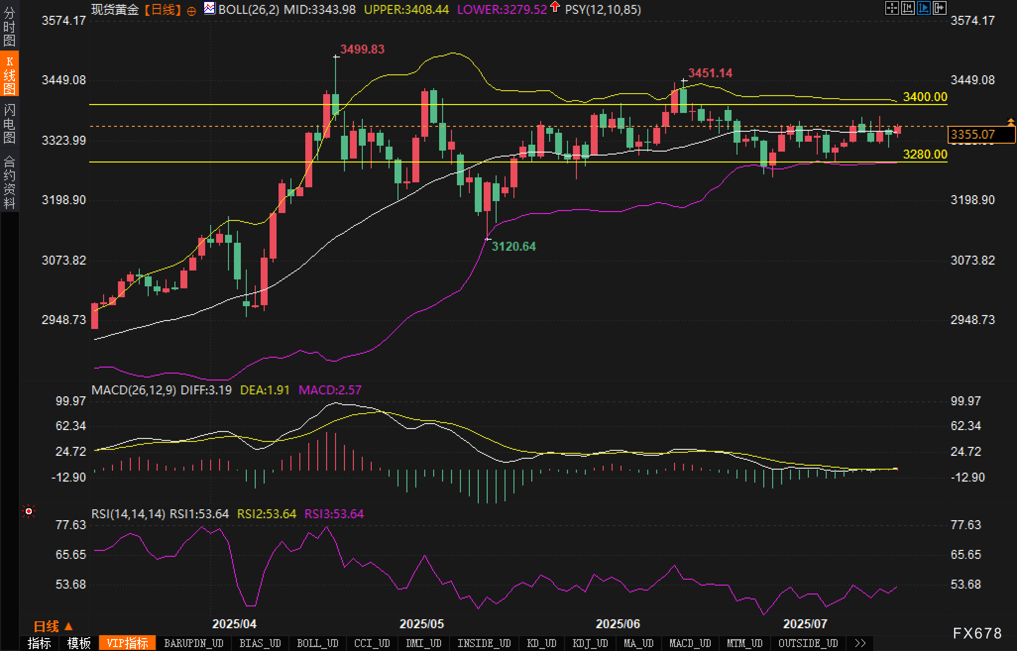 布林带指标:布林带中轨位于3343.98美元,上轨在3408.44美元,下轨在3279.52美元,当前价格运行在中轨附近,显示波动率收敛,存在即将选择方向的预期。