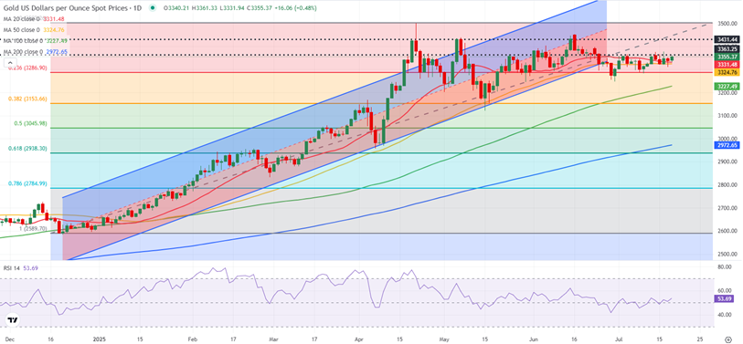 24K99讯 周一(7月21日)亚市盘中,现货黄金维持日内反弹走势,目前金价位于3358美元/盎司附近。FXStreet分析师Eren Sengezer撰文,对金价本周走势进行分析和预测。