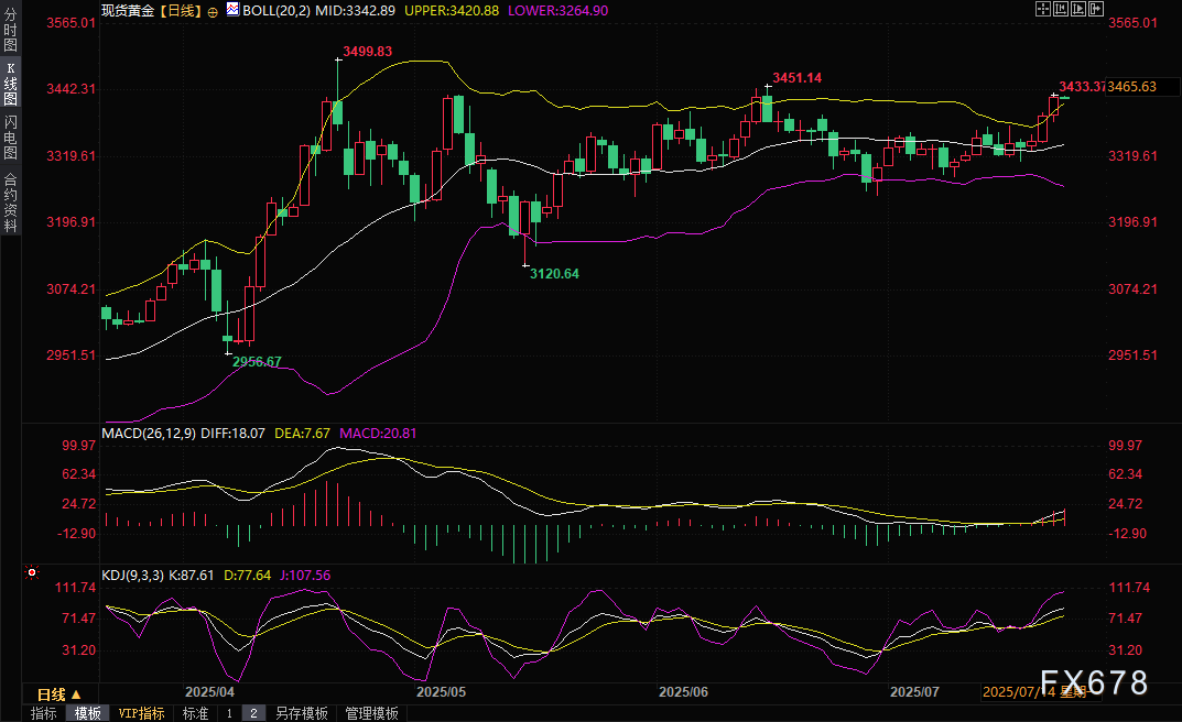 与此同时,欧盟与美国的贸易谈判也陷入僵局。欧盟外交官透露,鉴于协议前景黯淡,欧盟正在考虑对美国采取更广泛的反制措施。若8月1日后美国对欧盟商品征收高达30%的关税,全球贸易环境可能进一步恶化。这种不确定性直接推高了市场的避险情绪,黄金作为传统避险资产自然受到追捧。