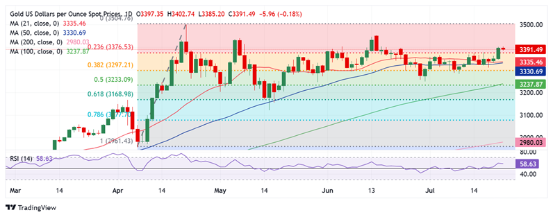 24K99讯 周二(7月22日)亚洲交易时段,现货黄金在上一交易日暴涨后出现回调,目前金价位于3385美元/盎司附近。FXStreet高级分析师Dhwani Mehta撰文,对金价技术走势进行分析。