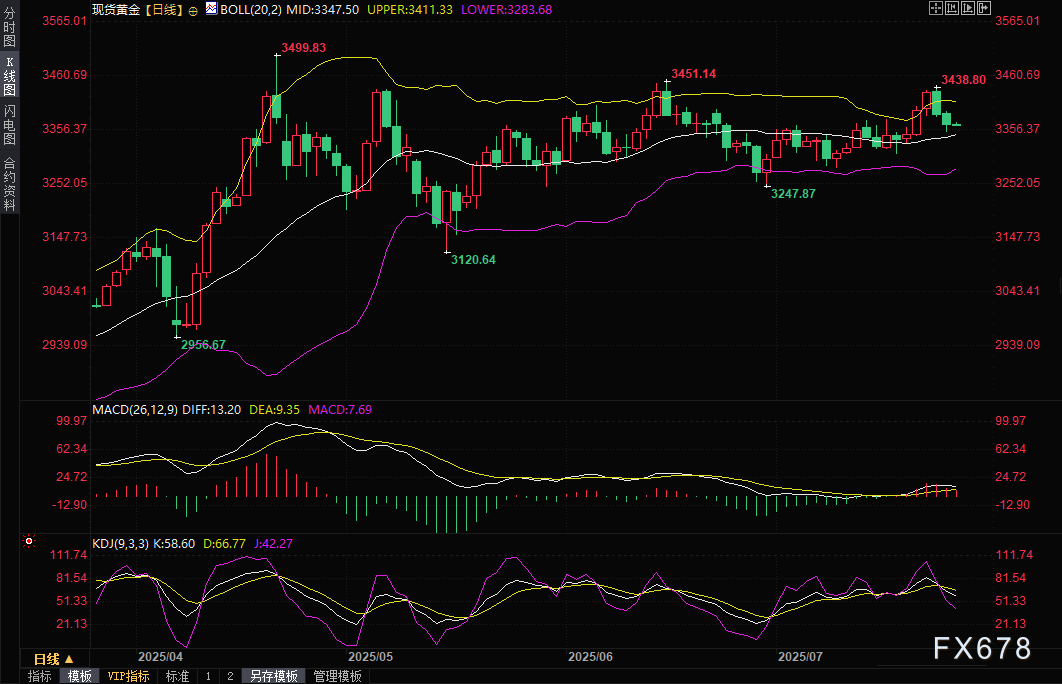 周四(7月24日)金价在全球贸易乐观情绪和强劲经济数据的双重压力下,连续两日下跌,盘中一度逼近3350美元/盎司的心理关口,收报3368.35美元/盎,跌幅约0.55%。市场对美国与日本、欧盟贸易协议的乐观预期削弱了黄金作为避险资产的吸引力,而美国劳动力市场数据的意外向好进一步推高美元和美债收益率,给金价带来显著下行压力。与此同时,特朗普总统对美联储的罕见访问以及市场对美联储利率政策的密切关注,为黄金市场增添了更多不确定性。