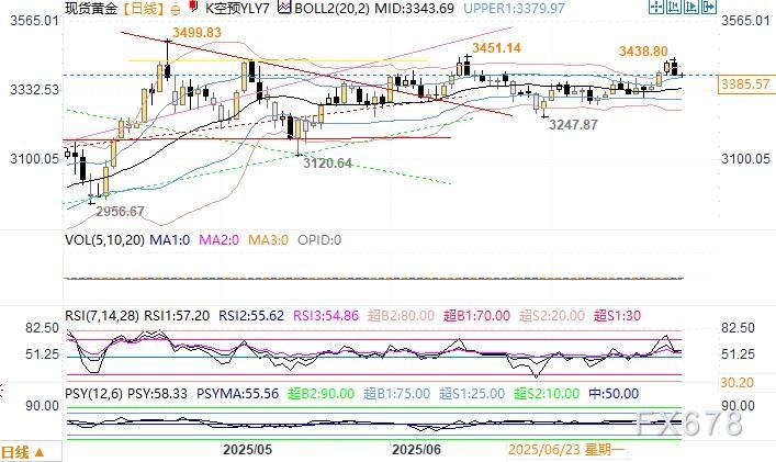 北京时间7月24日11:56 现货黄金 报 3384.57 美元/盎司