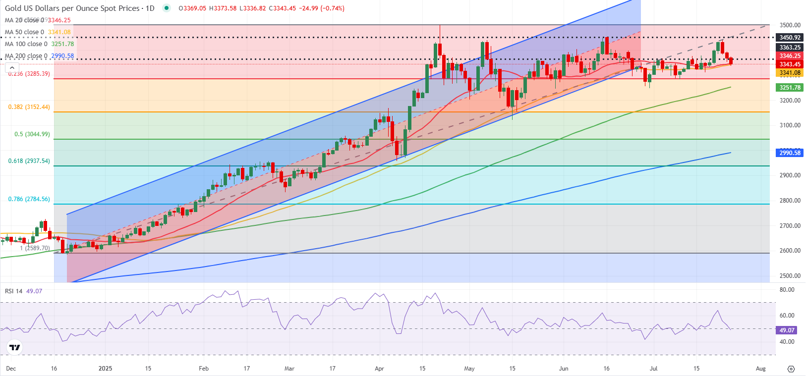 Sengezer补充道,在下行方面,若金价维持在3340美元/盎司(20日移动均线和50日移动均线)下方,技术性卖家可能仍有兴趣。在这种情况下,3285美元/盎司(23.6%斐波那契回撤位)可能被视为下一个支撑位,之后是3250美元/盎司(100日移动均线)和3150美元/盎司(38.2%斐波那契回撤位)。