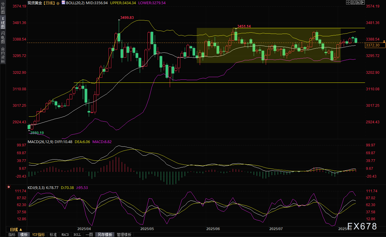因为,若峰会取得进展并推动停火协议,短期内可能缓解地缘政治风险,导致避险需求下降,金价在周一(8月11日)震荡走弱,截止09:10,最低曾触及3367.62美元/盎司,跌幅约0.8%。不过,特朗普提出可能涉及“领土交换”的和平协议引发了乌克兰及欧洲盟友的强烈担忧,市场对俄乌冲突进一步升级或谈判破裂的恐惧仍可能限制金价跌幅。长期来看,全球经济不确定性(如美国债务问题、央行购金热潮)仍有望为金价提供支撑。