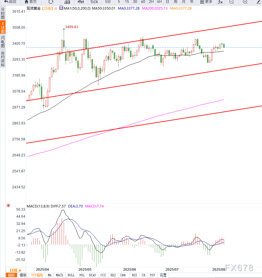 反之,上方3400美元关口依旧是重要阻力,突破后有望挑战3430美元以及3450美元区域,若持续站稳,则可能重启升势并逼近3500美元的历史高位。