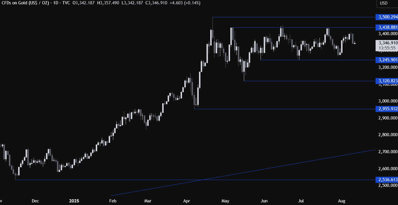 在日线图上,黄金价格一直稳步攀升至3,438美元的关键阻力位,但昨日出现回落。整体来看,市场仍处于区间震荡,从风险管理的角度,空头在阻力位附近做空风险更可控,而多头在3,245美元支撑位附近布局则有更好的风险回报比。