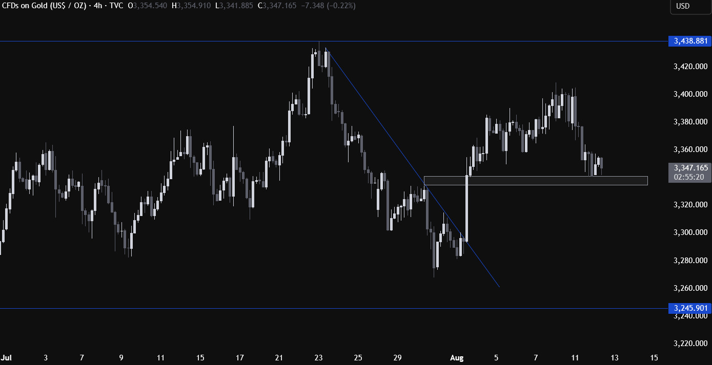 在4小时图上,除了3,340美元附近的区域外,并没有特别明确的支撑或阻力水平。昨日空头动能在该位置有所减弱,这是多头可能入场的区域,止损可设在该区间下方,目标为反弹至3,438美元阻力位。空头则会关注价格向下突破该区域,以增加对3,245美元支撑位的看空押注。