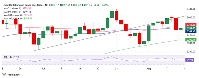 24K99讯 周二(8月12日)亚市尾盘,现货黄金基本持稳,目前金价位于3345美元/盎司附近。FXStreet高级分析师Dhwani Mehta撰文,对金价日内交易进行分析。