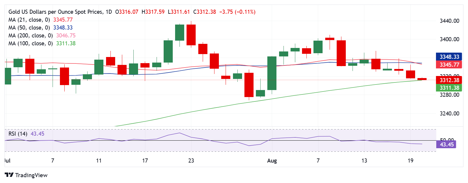 若空头能将金价压制在100日均线(3,311美元)下方,则下跌趋势有望延续。下一目标为7月31日低点3,274美元,若跌破则将测试7月30日低点3,268美元,并有可能触及3,250美元的心理关口。