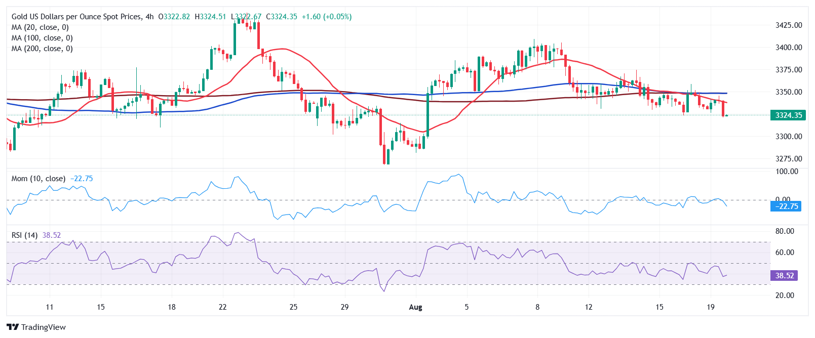 24K99讯 周三(8月20日)亚市盘中,现货黄金在上一交易日重挫后基本持稳,目前金价位于3316美元/盎司附近。FXStreet首席分析师Valeria Bednarik撰文,对黄金技术前景进行分析。