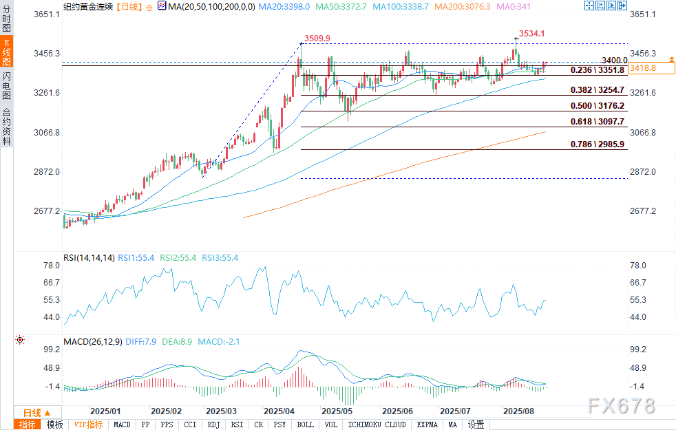 从技术面来看,12月黄金期货的多头在近期整体技术面占据优势。多头的下一个上行目标是推动期货价格收于3500.00美元这一关键阻力位上方;空头的下一个近期下行目标则是将期货价格压至7月低点3319.20美元这一重要技术支撑位下方。第一阻力位见于上周高点3423.40美元,进一步阻力位为3450.00美元;第一支撑位见于3400.00美元,进一步支撑位为上周低点3353.40美元。