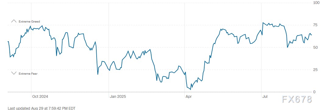 美国有线电视新闻网发布的衡量投资者情绪的关键指标“恐惧与贪婪指数”,目前处于64点的“贪婪”区间。但该指数在近期交易时段持续走低,这表明市场短期内可能难以触及“极度贪婪”区间。