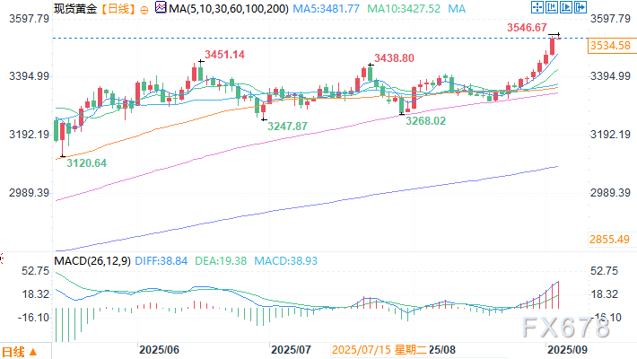 北京时间9月3日15:14 现货黄金 报 3534.58 美元/盎司