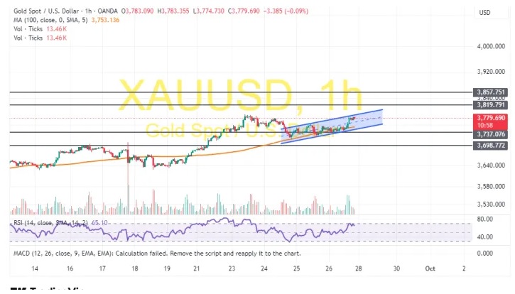 Kitonyi写道,周五,在美国公布最新数据后,金价从约3737美元/盎司的日内低点大幅反弹。在60分钟的图表中,金价在一个上升通道内交易。