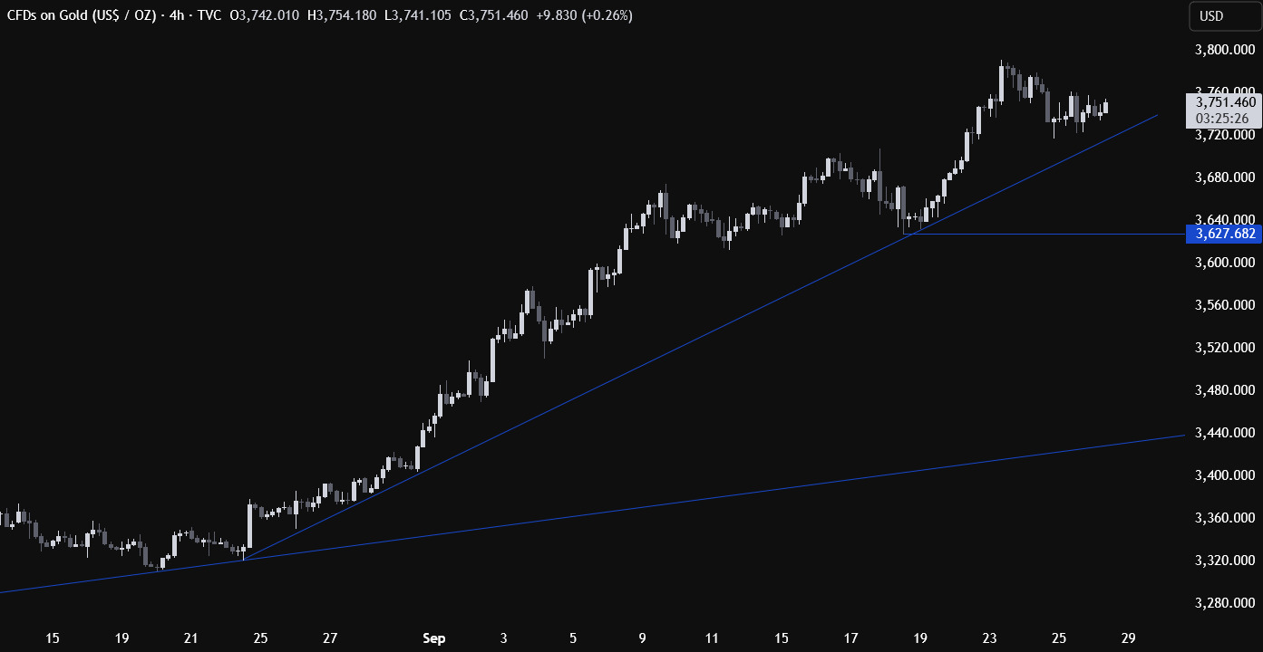 截至发稿,现货黄金维持在3,749.24美元,较本周初上涨1.9%,并在周二触及3,790.82美元的历史新高。
