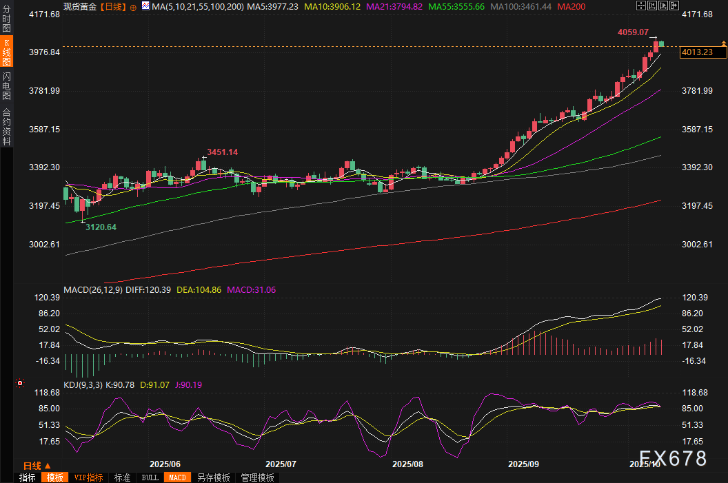 在全球金融市场动荡不安的2025年,黄金作为传统避险资产的魅力再度绽放。金价周三(10月8日)不仅首次突破每盎司4000美元大关,现货黄金一度刷新历史高点至4059.07美元/盎司,还带动银价创下历史最高收盘价。然而,就在涨势如火如荼之际,中东地缘政治局势的突然转折——哈马斯与以色列达成停火协议——迅速冷却了市场避险情绪,导致周四(10月9日)金价出现回调,值得投资者高度警惕。