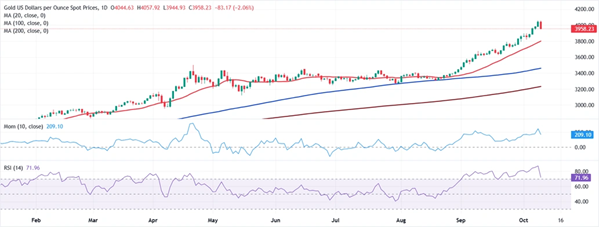 24K99讯 周五(10月10日)亚市盘中,现货黄金在上一交易日暴跌后继续承压,目前金价位于3973美元/盎司附近。FXStreet首席分析师Valeria Bednarik撰文,对黄金技术前景进行分析。