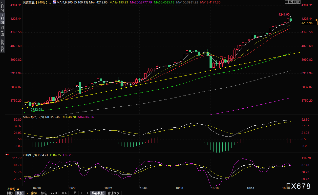 不过,目前美元指数收复了日内早些时候跌幅,令黄金多头有所顾忌,金价目前回吐部分涨幅,交投于4210美元/盎司附近。