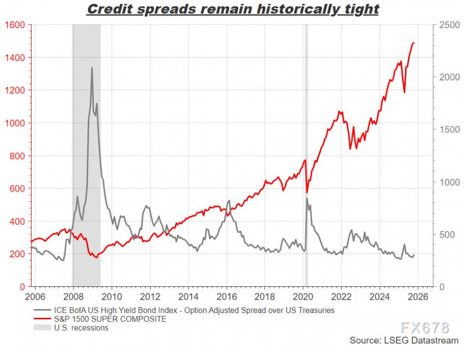然而,在金融市场环境处于近四年最宽松状态、股市频创新高且信贷利差仍处低位的背景下,继续降息的政策路径充满争议。若市场确实存在泡沫,当前的宽松政策只会进一步吹大泡沫。