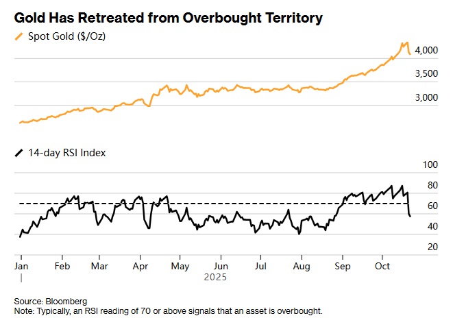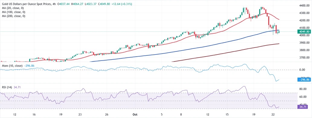 24K99讯 周四(10月23日)亚市盘中,现货黄金再度遭遇抛售,目前金价位于4074美元/盎司附近,日内重挫近25美元。FXStreet首席分析师Valeria Bednarik撰文,对黄金技术前景进行分析。