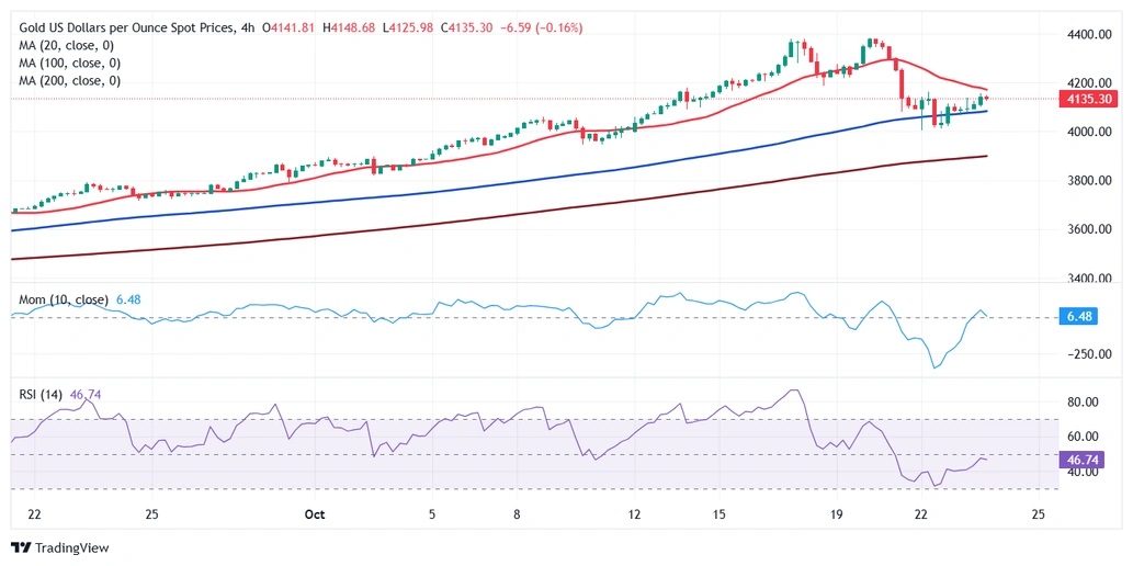 24K99讯 周五(10月24日)亚市盘中,现货黄金维持日内反弹走势,目前金价位于4139美元/盎司附近。FXStreet首席分析师Valeria Bednarik撰文,对黄金技术前景进行分析。