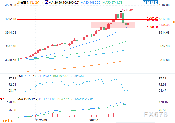 技术分析:现货黄金维持在4150美元下方的区间内