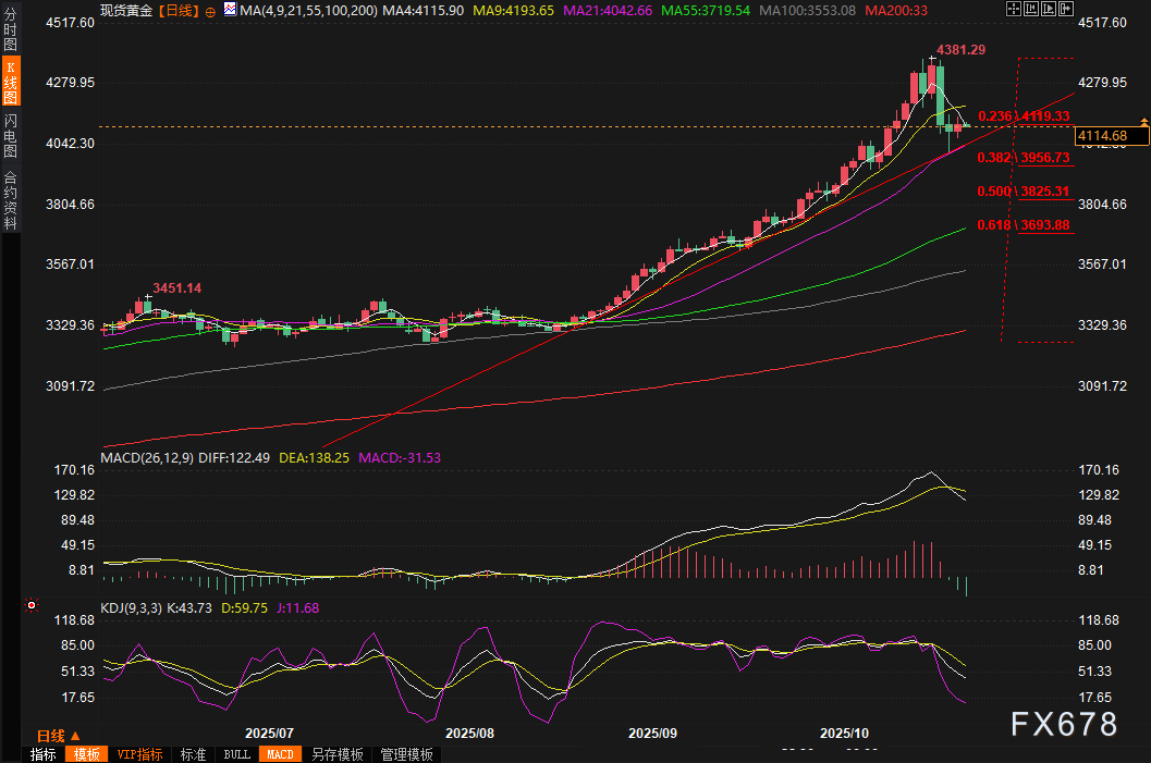 同时,白宫据报道计划限制美国公司向中国出口软件,以反制中国对稀土出口的控制和对美国船只的港口费用征收,这进一步升级了中美科技紧张关系。这些事件交织成网,形成一股持续的避险潮流,推动黄金从周二的急挫中快速恢复。尽管金价在周二暴跌近5.5%,从4380美元高点跌至4120美元低点,周三一度跌至4000关口附近,但地缘政治的不确定性迅速将买盘拉回市场。值得一提的是,这种需求并非短期投机,而是源于全球央行对美元的多元化配置,例如欧洲央行最近宣布黄金在其储备中占比已超过欧元,达到20%,这标志着黄金角色从单纯避险工具向战略储备资产的结构性转变。