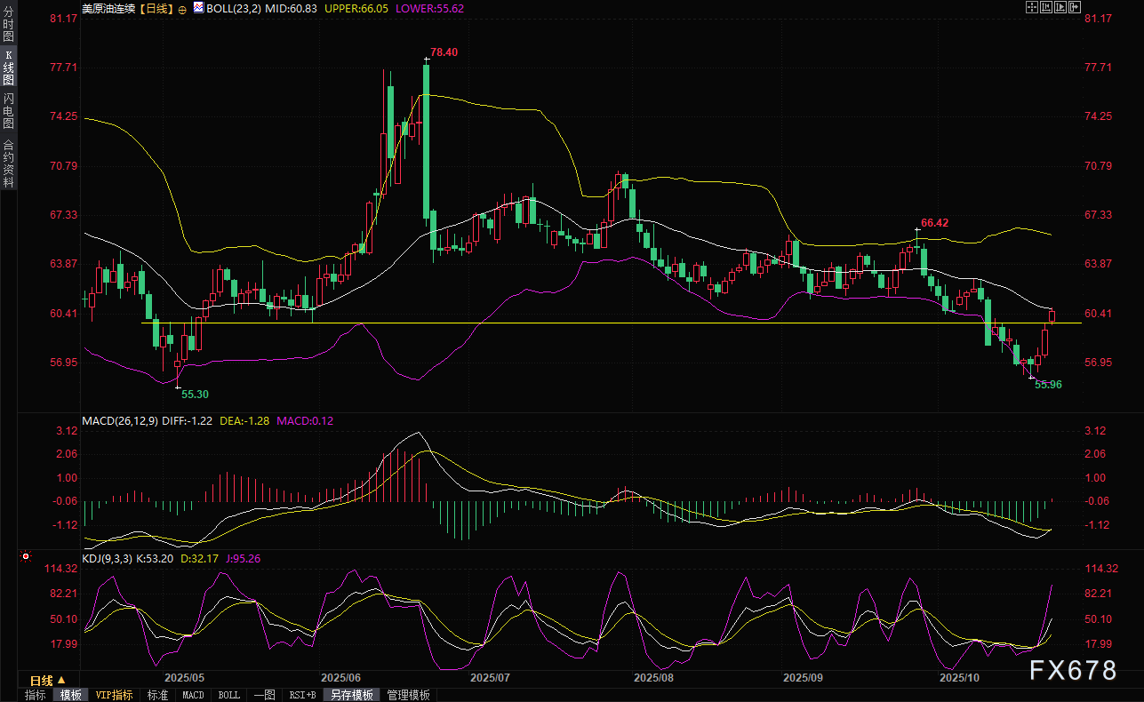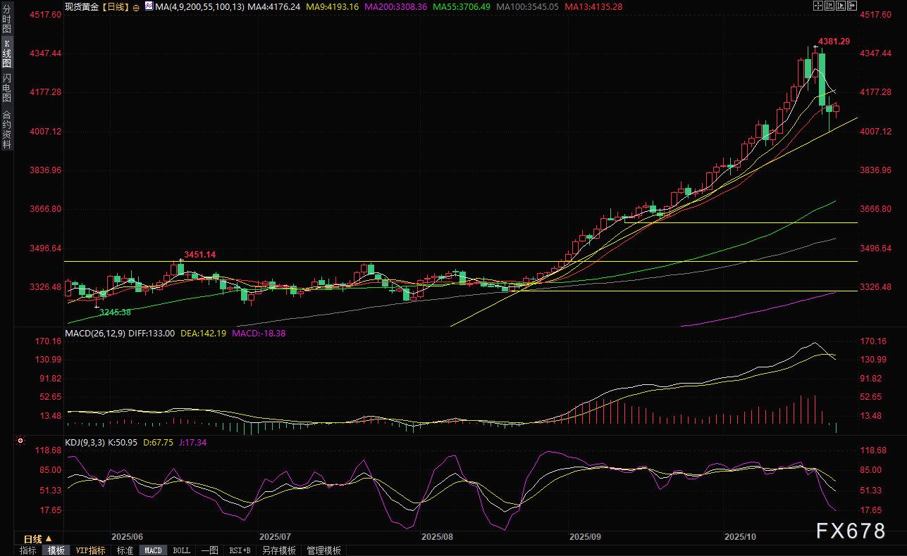 受此消息影响,周三国际油价大涨3%,周四(10月23日)亚市延续涨势,美原油一度上涨4%至60.90美元/桶,为10月10日以来新高。制裁加剧了俄乌冲突的紧张局势,地缘政治不确定性通常会提升黄金作为避险资产的吸引力。投资者可能因担心全球局势恶化而增加黄金持有量,从而给金价提供上涨动能,周三金价因为多头获利了结曾一度跌至4000关口附近,但避险买盘再度帮助金价上涨,周三收报4098美元附近,周四亚市,金价继续震荡走高,一度上涨0.85%至4137美元附近。