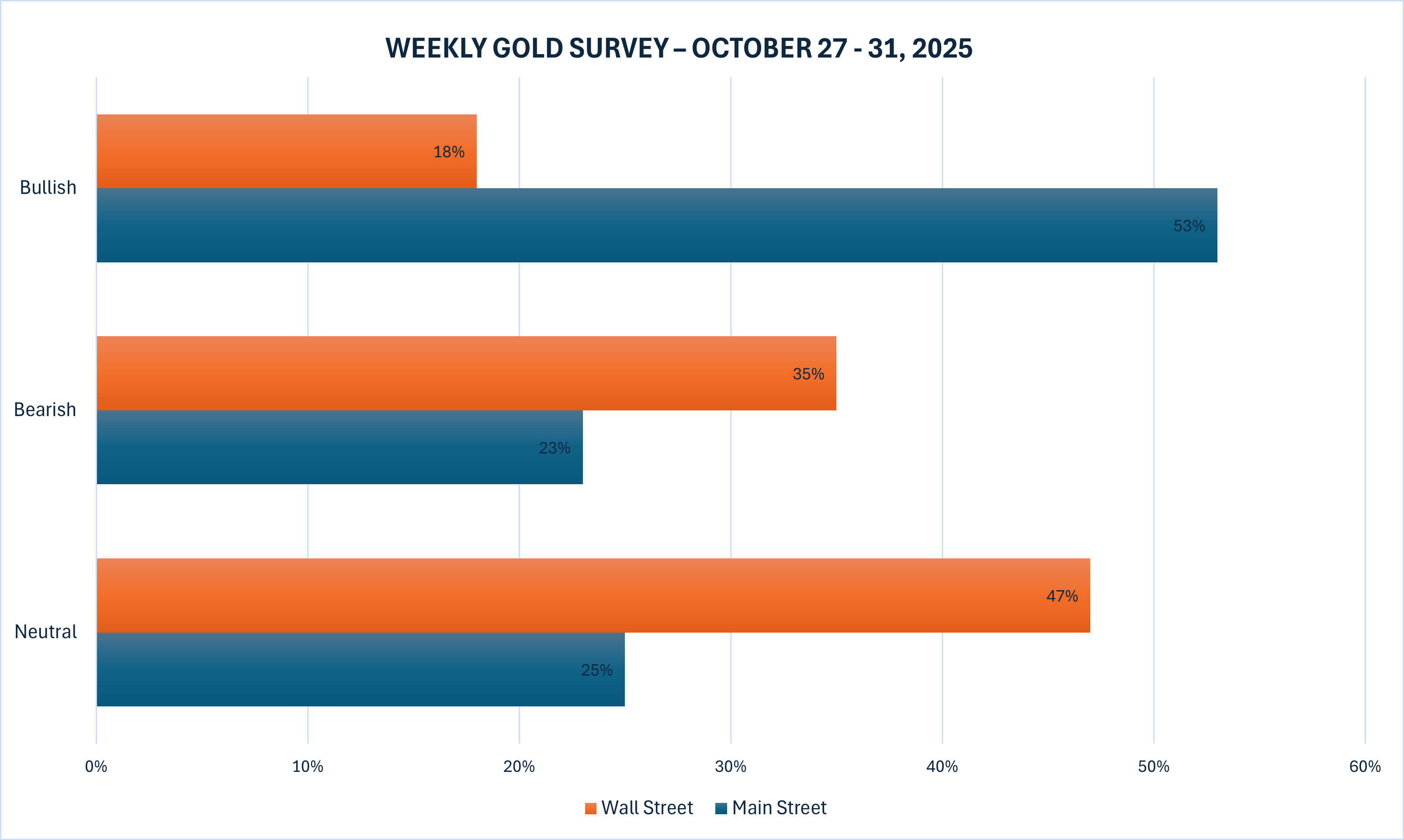 市场情绪逆转:华尔街转空 散户信心下滑Kitco最新黄金调查显示,大部分华尔街分析师已由此前的看多立场转向看空或中性,而散户投资者仍维持微弱的多头优势。
