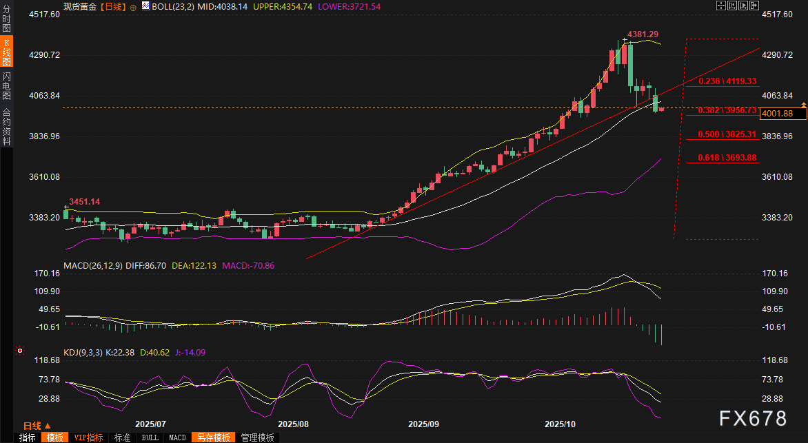 除了基本面因素,技术性卖盘也是金价跌破4000美元的重要原因。CPM Group管理合伙人Jeffrey Christian表示,黄金价格在10月前三周从3800美元快速上涨至4400美元,积累了大量获利盘。在贸易紧张局势缓和的背景下,部分投资者选择获利了结,推动了技术性抛售的发生。这种技术性调整与基本面因素叠加,进一步放大了金价的跌幅。