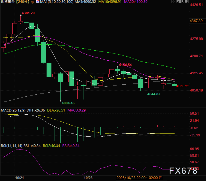 周一(10月27日)亚欧时段现货黄金低开后震荡,目前交投于4070附近,跌1%左右。白银同步走弱,铂金与钯金则小幅走高,贵金属板块呈现分化格局,铜价甚至创出了近期新高。