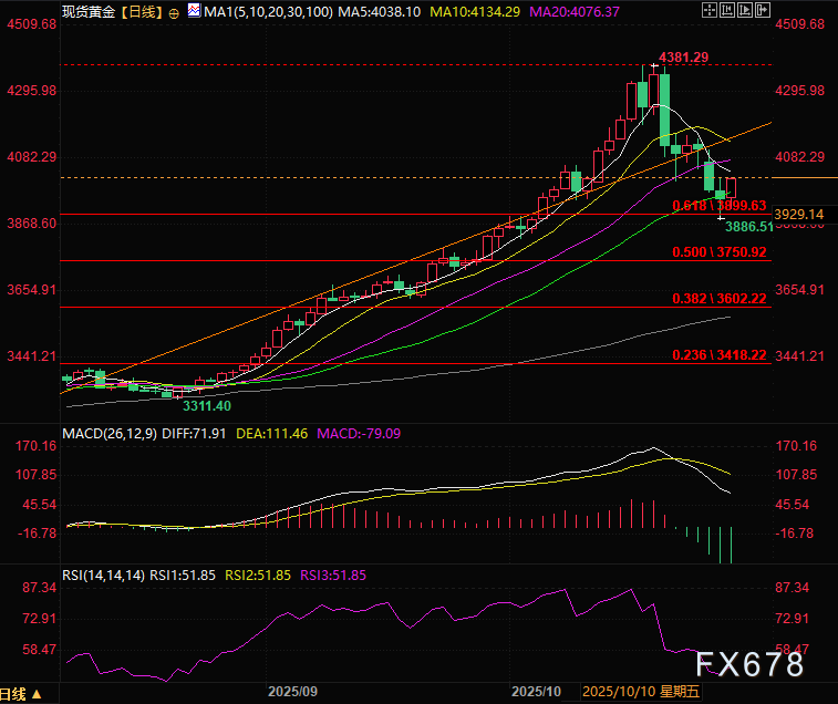 美国宣布对俄罗斯两家最大石油公司实施新限制,白宫同时取消特朗普与俄罗斯总统弗拉基米尔·普京原计划在布达佩斯举行的会晤。地缘政治风险始终存在,或为避险资产黄金提供持续支撑。